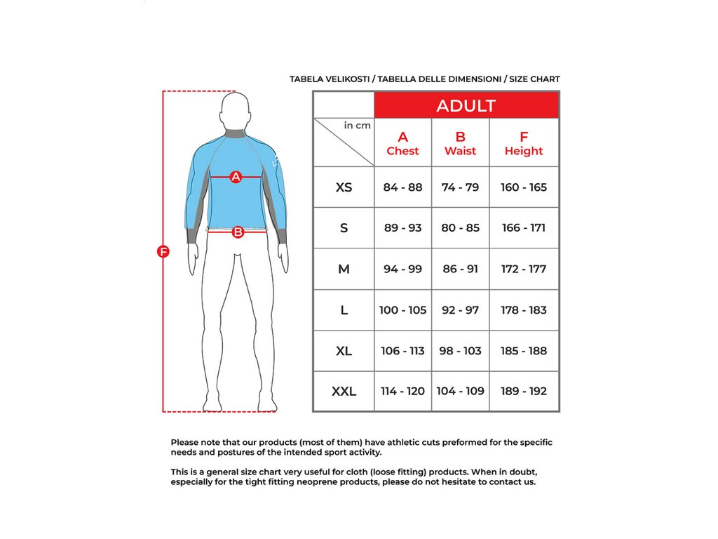 - Three-layer fabric - Latex and neoprene cuffs- Neoprene collar