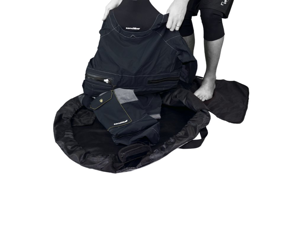 Sandiline presents a versatile gear storage solution designed for the active water sports enthusiast.Introducing our all-in-one bag, the perfect companion for your wet or drysuits and other water gear. With a 33-inch diameter, this bag offers amplespace for all your essentials. Equipped with a convenient standing mat, our bag ensures you stay clean and dry while you change in and out ofyour gear.
