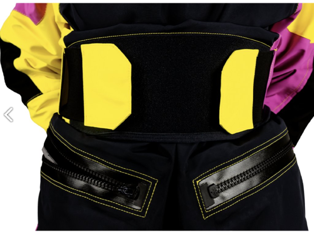 abrasion resistance. A Single zipper acts like a main entry zipper and a relief zipper, decreasing bulk and making the suit lighter, more
