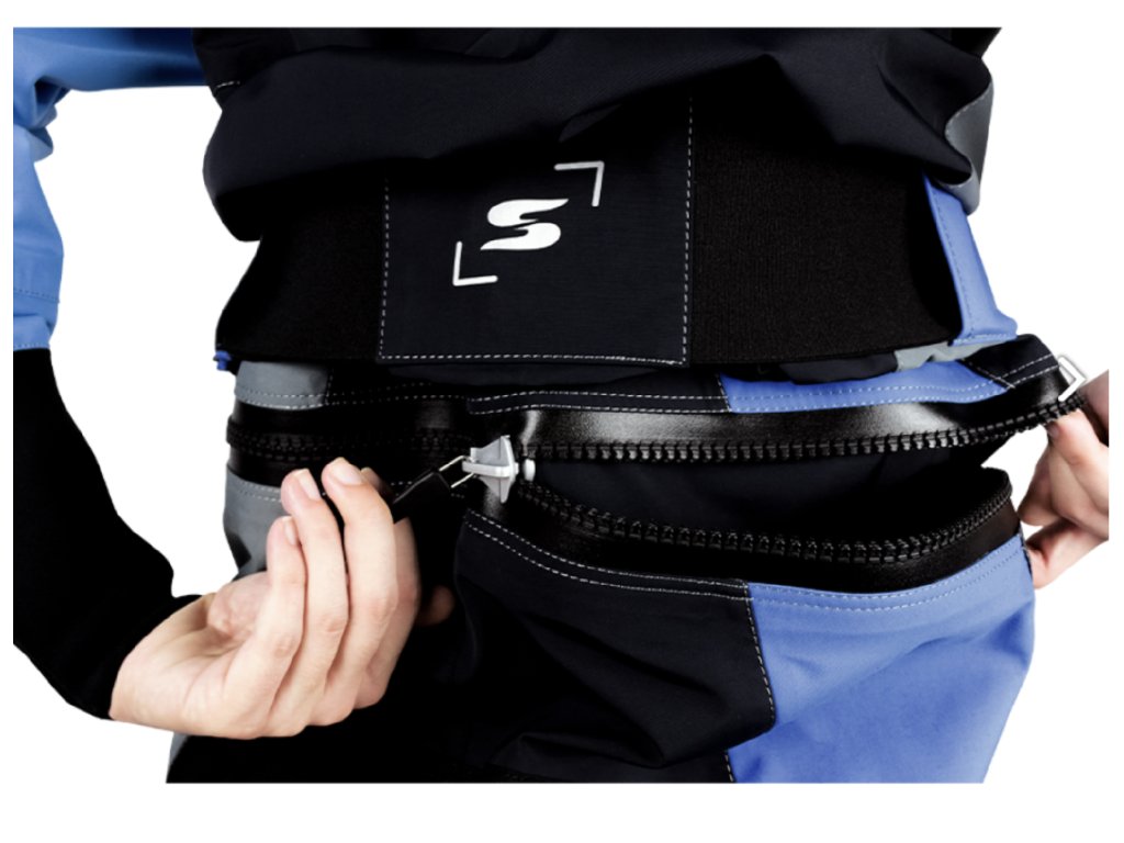 Having no zippers in the shoulder area drastically improves the range of movement and makes paddling in a dry suit more enjoyable.
